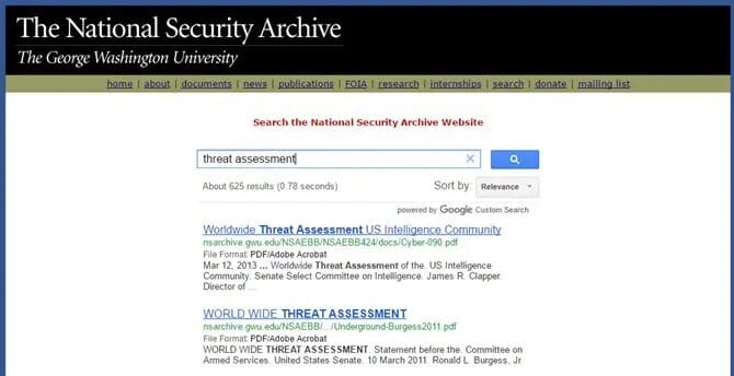 Este es un recurso no gubernamental para documentos de seguridad no clasificados. Es el mayor repositorio de tales documentos fuera del gobierno de los Estados Unidos. Establecido para chequear los secretos crecientes del gobierno, el sitio utiliza una búsqueda personalizada de Google para dar acceso a más de 10 millones de páginas de documentos gubernamentales.