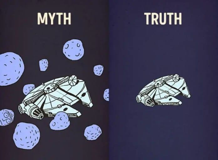 #3 MITO: En un cinturón de asteroides están pegados unos a otros.