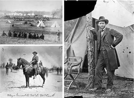 Una de esas imágenes, que se titula «General Grant At City Point», muestra al general de la Unión posando con orgullo sobre un caballo, sin inmutarse después de una de las batallas más feroces de la Guerra Civil, mientras que los prisioneros de guerra son arrastrados por un campamento de la Unión. Se ha colgado en los ayuntamientos y museos desde 1902, haciendo que las mujeres suspiren, y dando orgullo patriótico a los ciudadanos.