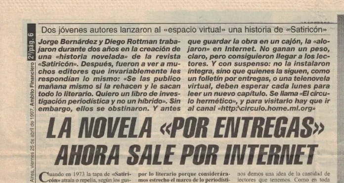 Finalmente en el año ’97, con la naciente World Wide Web, optamos por subirlo a un sitio, a razón de un capítulo por semana. Fue la primera novela argentina en internet. Y fue un éxito. Todavía se puede leer completa en Vida de Averchenko.