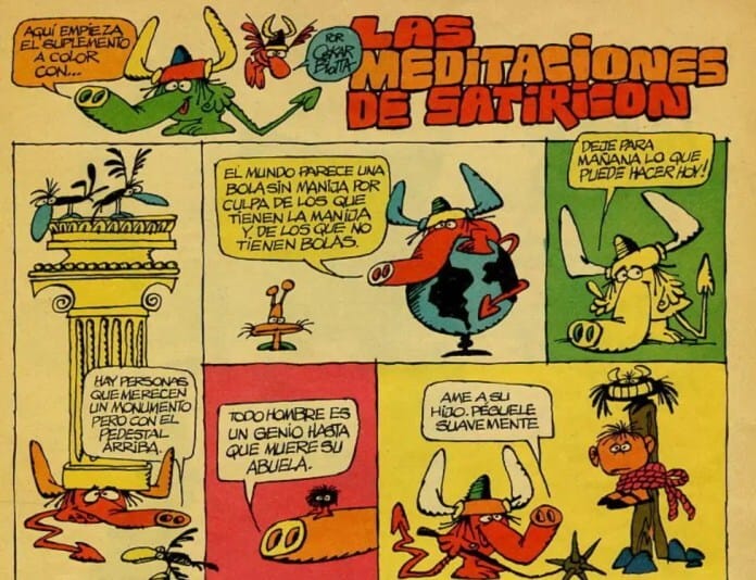 A la distancia pienso qué era lo que me llamaba tanto la atención en mi niñez y adolescencia. «La revista que empieza donde las demás terminan», era su eslogan. ¿Empieza qué o a qué? Las otras revistas del momento eran en dos dimensiones, Satiricón parecía salirse de las páginas que la contenían. Si exisitiera romper la cuarta pared en una revista, eso hacía Satiricón, con el protagonismo de sus periodistas, una idea más del siglo XXI que del siglo pasado, donde se nos enseñaba a ser invisibles en nuestro trabajo para que la noticia fuera la que destacara. Mad también me fascinaba, pero le faltaba esa cercanía y ese acento familiar, incluso en la versión local.