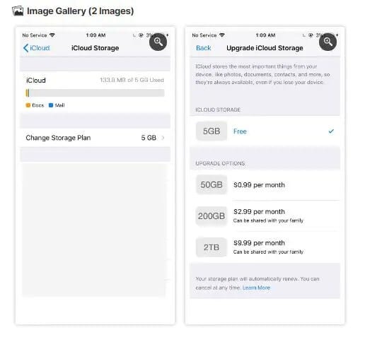 iCloud es gratis para los primeros 5GB de almacenamiento, con actualizaciones pagas disponibles en incrementos de 50GB, 200GB y 2TB.
