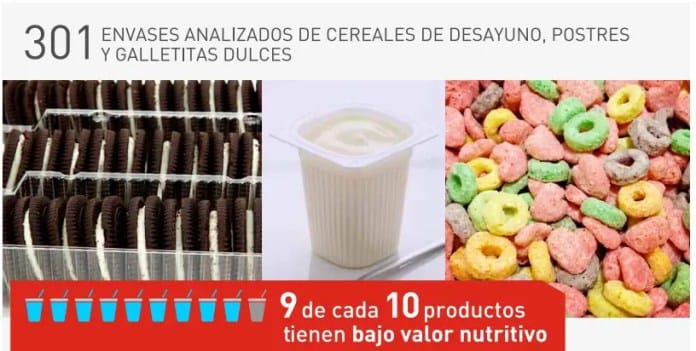 Una investigación realizada por FIC Argentina sobre 300 productos (incluyendo cereales, postres y galletitas dulces), que evaluó la calidad nutricional y las técnicas de marketing utilizadas en los envases, reveló que 9 de cada 10 tienen bajo valor nutritivo. La presencia de mensajes de nutrición y de personajes fueron los recursos más detectados en los envases. Se trata de técnicas que influyen en las preferencias alimentarias no sólo de adultos sino también de niños, niñas y adolescentes.
