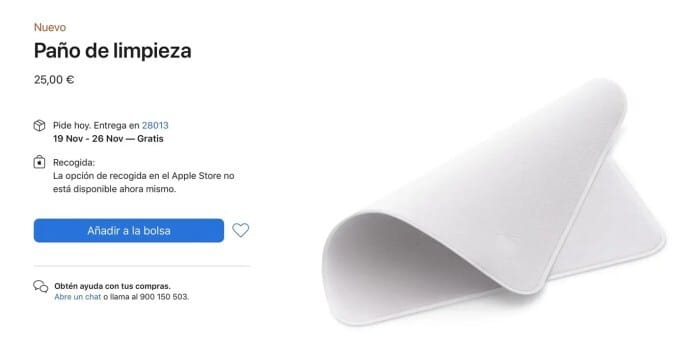 La costumbre de Apple de vender los accesorios para sus dispositivos a un precio sorprendentemente elevado ya es célebre, y esta no es la excepción. El paño de limpieza tiene un valor de 25 euros en sus tiendas europeas, y 19 dólares en EE.UU.
