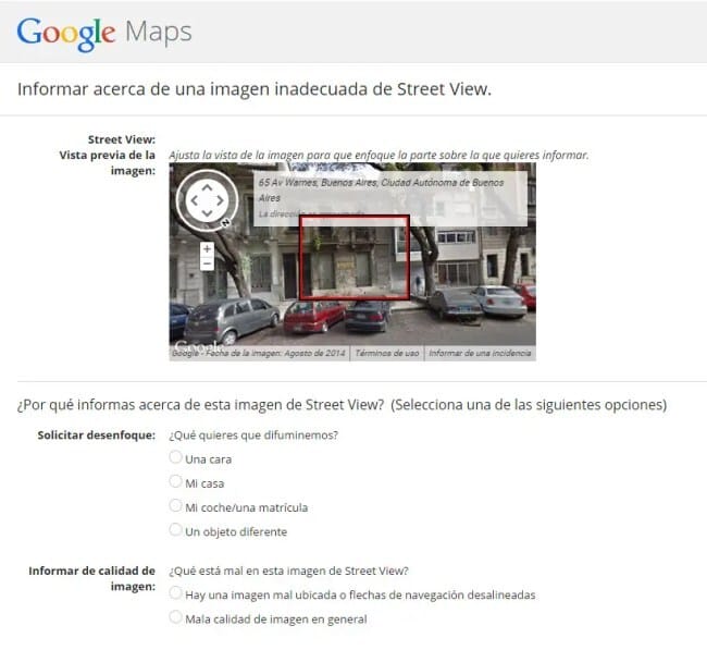 Completá el formulario, que no sólo sirve para borrar tu casa de Google Maps, sino también blurear tu cara, la matrícula de tu auto o cualquier otro detalle personal que quieras preservar.