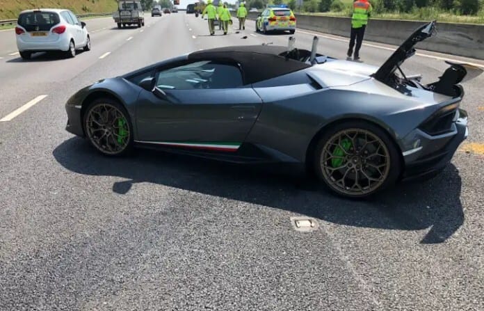 Un automóvil deportivo Lamborghini Huracan Spyder, valuado en USD 250.000, fue chocado por su propietario 20 minutos después de haberlo estrenado, en una carretera del condado de Yorkshire del Oeste, en Reino Unido.