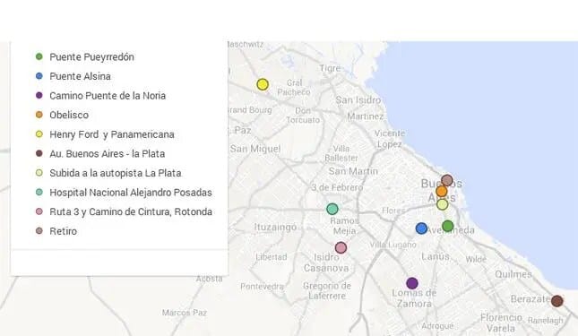 Aquí un mapa con todos los cortes que se desarrollaron durante la mañana: