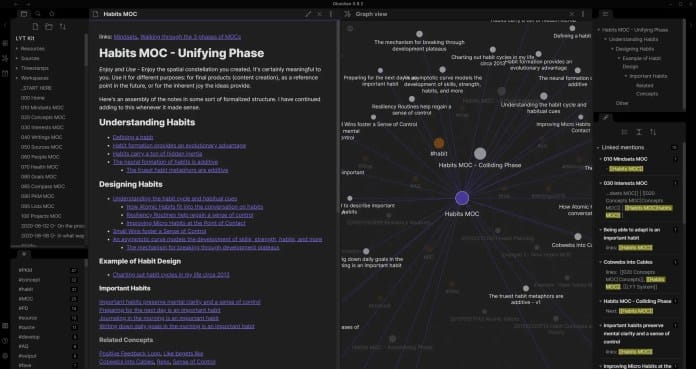 Obsidian es una poderosa base de conocimientos que funciona sobre una carpeta local de archivos Markdown de texto sin formato, que convierte los archivos Markdown en una rica base de conocimientos con opciones de navegación interactivas.