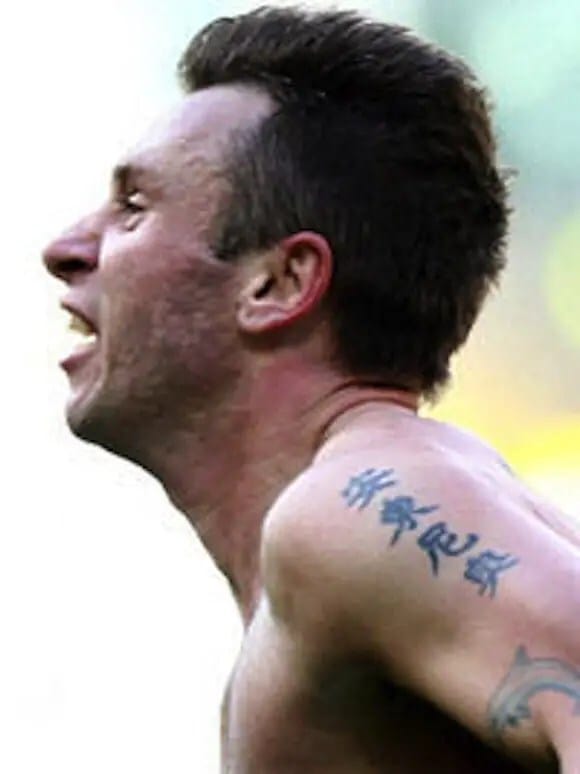 El futbolista griego Theofanis «Fanis» Gekas, que ha estado atrayendo la atención de la web en Japón recientemente por su inusual tatuaje estilo chino, no es el único jugador de la Copa del Mundo con un poco de tinta no-del-todo-precisa sobre sus brazos. Aquí algunas pruebas fotográficas de lo que su madre debe haberle dicho: «Si no puedes leerla, no te lo grabes permanentemente en la piel.»