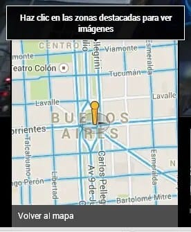 7- Se puede también ver imágenes destacadas de lugares cercanos a través del mini mapa que se encuentra en la esquina inferior derecha. Y para volver a la navegación tradicional por el mapa plano o satelital, basta con cliquear en «volver al mapa»