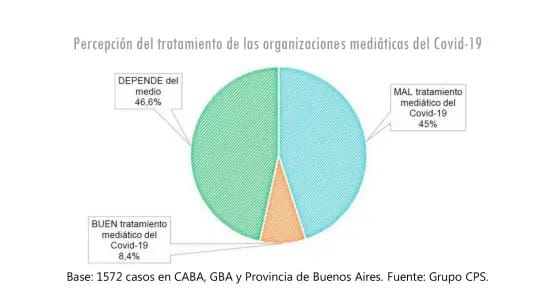El tratamiento de los medios sobre la pandemia tuvo un alto rechazo. Apenas a un 8.4% de los encuestados le pareció «bueno».