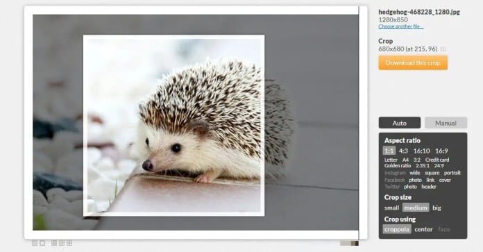 Su uso es muy sencillo. Solo debes presionar el botón «seleccionar archivos para cargar», elegir la relación de aspecto final de la imagen que deseas (con opciones para fotos estándar en 4:3 y 3:2, pantalla ancha en 16:9 y 2.35:1, e incluso la foto de portada de la línea de tiempo de Facebook ultra ancha de 2.67), y dejarla trabajar. Por defecto, la aplicación recorta automáticamente las fotos conservando las partes más importantes
