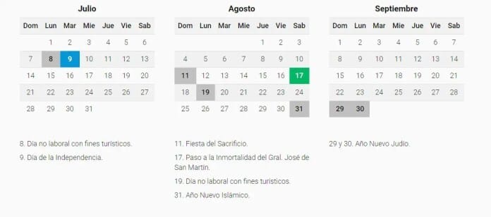 29 y 30 – Año Nuevo Judío. (No laborable, sólo para habitantes que profesen la religión judía, según dispone la ley 23.399.)