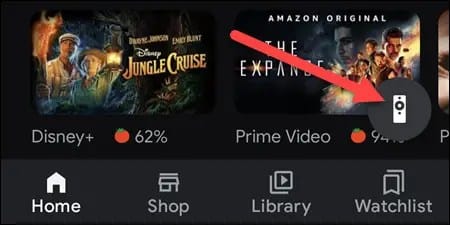 Primero, abre la aplicación Google TV en tu teléfono o tablet Android. Busca un botón remoto flotante en la esquina inferior derecha.