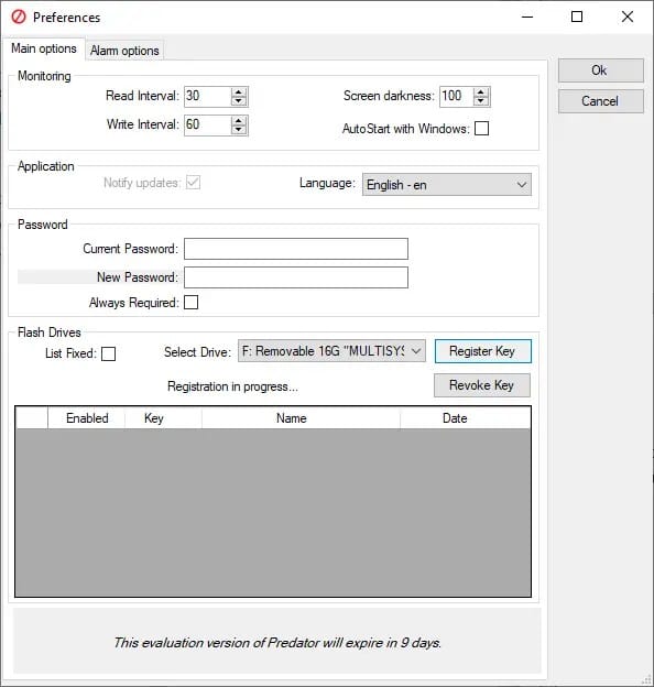 Predator es una de las herramientas más populares para convertir una unidad USB en un dispositivo de control de acceso en Windows. En su momento era completamente gratuita para los usuarios domésticos, sin embargo esa situación ahora ha cambiado, con una licencia de Home Edition que cuesta U$D 10. Para entornos profesionales y comerciales, cuesta U$D 15 por computadora sin soporte al cliente. Para Predator Professional con soporte de un año, el abono cuesta U$D 30 por computadora.