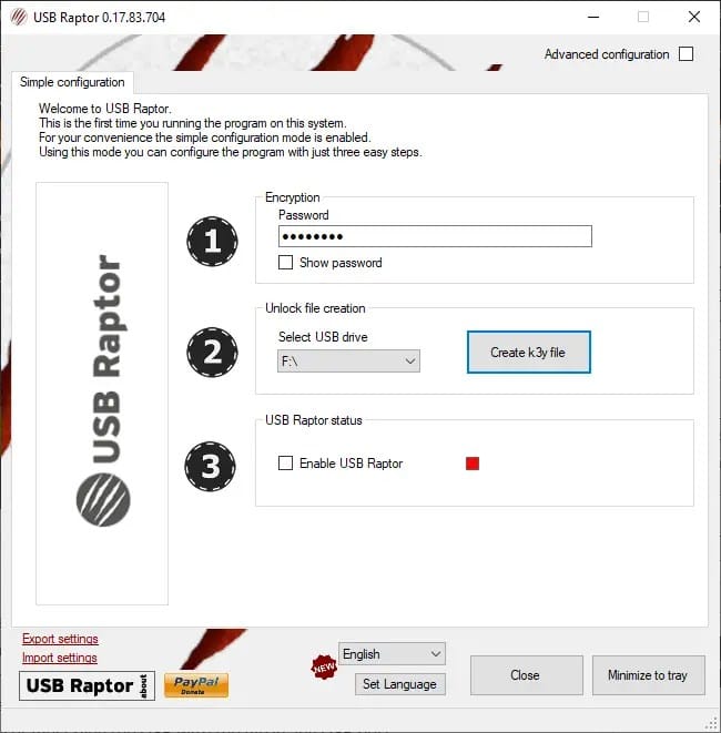 USB Raptor es una aplicación de llave de seguridad USB gratuita que puedes utilizar para bloquear tu máquina Windows. Al igual que otras opciones de seguridad USB, Raptor bloquea tu computadora cuando retiras la unidad flash USB del sistema.