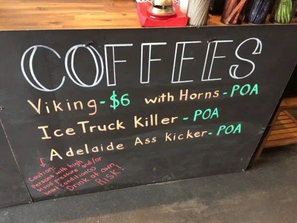 Un café en la ciudad de Adelaida, Australia, llamado Viscous Coffee, vende una taza de súper café que contiene cinco gramos de cafeína, 80 veces más que una taza normal, y la mitad de la dosis considerada como letal. Llamada «AssKicker», la potente bebida viene con una advertencia de salud para las personas con problemas de corazón, y presión arterial.