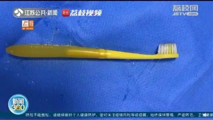 Un hombre chino tuvo que someterse a una complicada operación gastroscópica para que le retiraran un cepillo de dientes de 15 cm del estómago, después de tragarlo accidentalmente durante su rutina matutina.