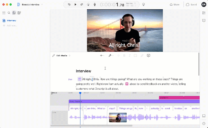 Descript Video es un programa de edición de audio y video, que transcribe videos y te permite recortar, reorganizar e incluso actualizar clips con solo mover el texto. Básicamente, la aplicación transcribe tu archivo de audio o video, y luego, cuando editas el texto, ¡editas a la vez el audio o el video como si estuvieras editando un documento de Word! Y eso no es todo: si te equivocas en alguna frase, el programa puede generar un audio replicando tu voz, a partir de la corrección efectuada al texto.