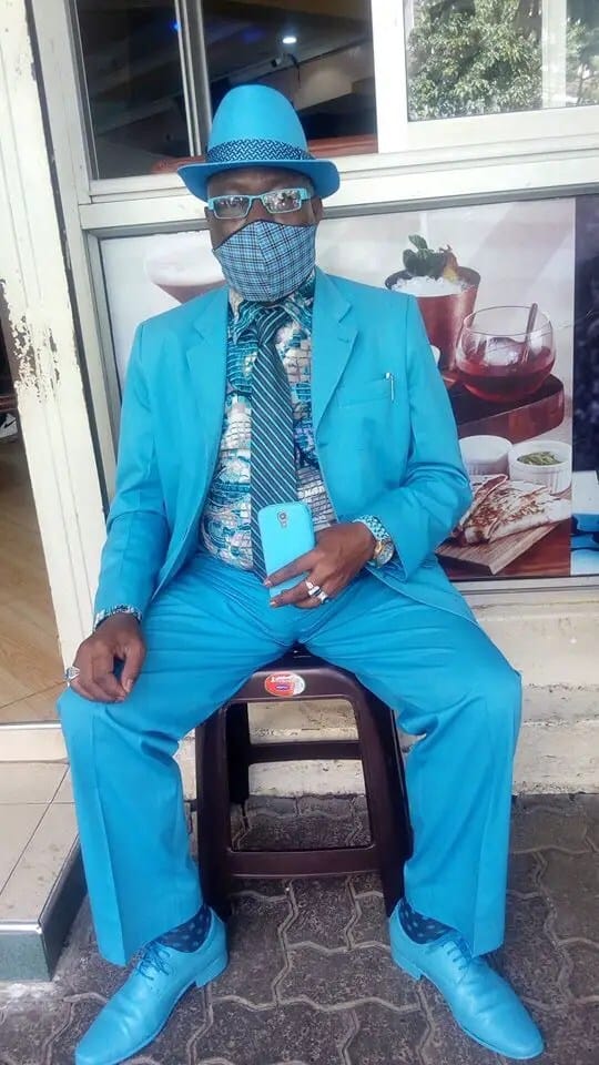 Mwangi, que afirma poseer 160 trajes, más de 200 pares de zapatos y 300 sombreros, así como accesorios a juego como bolígrafos, calcetines e incluso fundas para teléfonos, en colores que van desde el verde neón al amarillo azafrán, ha tenido que invertir en máscaras faciales a juego, ya que la pandemia Covid-19 llegó también a África.