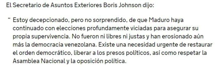 En un comunicado de la Embajada del Reino Unido del 21 de mayo:
