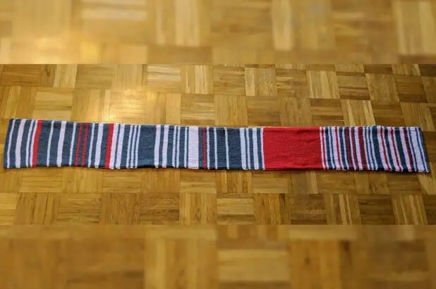 Deutsche Bahn compró la bufanda hecha a mano por Claudia Weber en una subasta online por 7.550 euros. El dinero está siendo donado a una organización benéfica para personas sin hogar.
