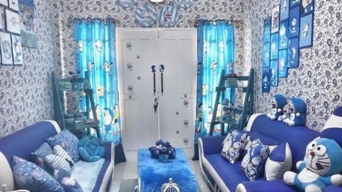 Desde el exterior, la casa pintada de azul y blanca de Karwurs y un gran retrato de Doraemon junto a la puerta insinúan que los propietarios son fanáticos del personaje japonés de manga, pero una vez que pones un pie dentro, te das cuenta de hasta qué punto llega su obsesión por Doraemon.