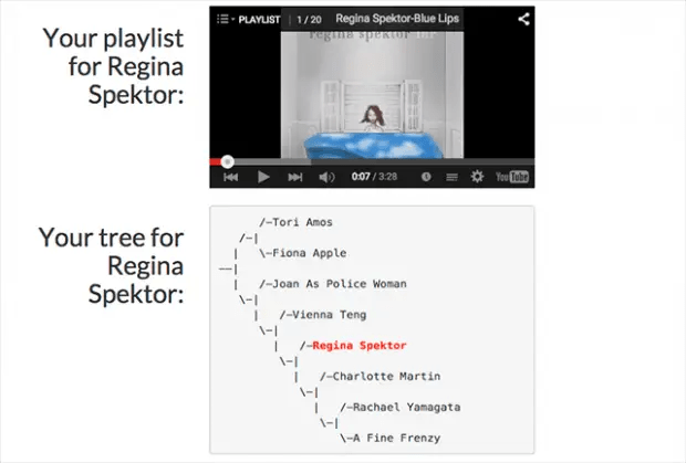 Este sitio propone listas de reproducción de YouTube de música recomendada. Solo hay que escribir el nombre de cualquier banda o intérprete y se sugerirá una lista llena de artistas para disfrutar. No obstante, no es un servicio de recomendación de música y no ofrece ninguna garantía de que la selección generada sea la mejor, sino que recoge temas para la consideración del usuario y da la posibilidad de explorar otros estilos.
