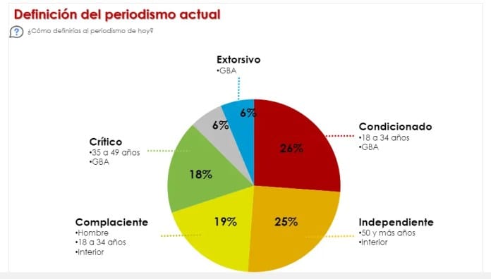 Además de determinar al mejor periodista de la Argentina, otro de los objetivos del estudio fue conocer de qué manera definen los argentinos al periodismo de hoy en día; y los resultados fueron casi en un empate técnico. Los consultados creen que la profesión está “condicionada” (26% de los votos), mientras que otros la perciben como “independiente” (25% de los votos).