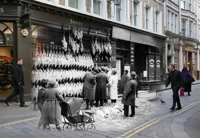 Esta serie de imágenes, explora cómo cambió la celebración de la Navidad a lo largo de los años en Londres, Inglaterra al combinar fotos de las Navidades del pasado y del presente.