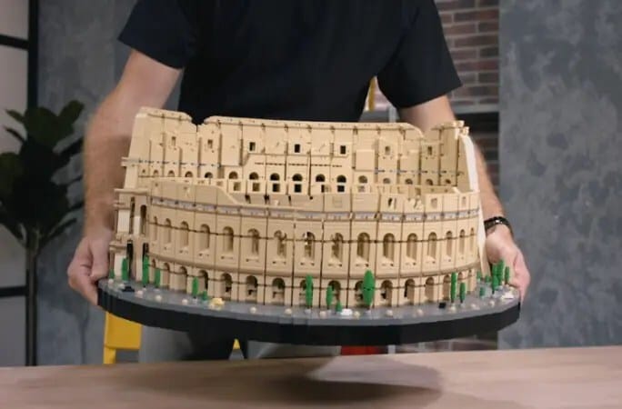 El modelo equivalente de LEGO contiene varias de las características distintivas del anfiteatro, incluidas sus icónicas columnas, arcos y distribución de asientos escalonada.