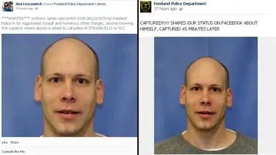 Anthony James Lescowitch Jr estaba siendo buscado desde noviembre por la policía de Estados Unidos por un crimen cometido en Pensilvania en julio del útimo año. Por ello, publicaron la típica imagen de «buscado» en las redes sociales.