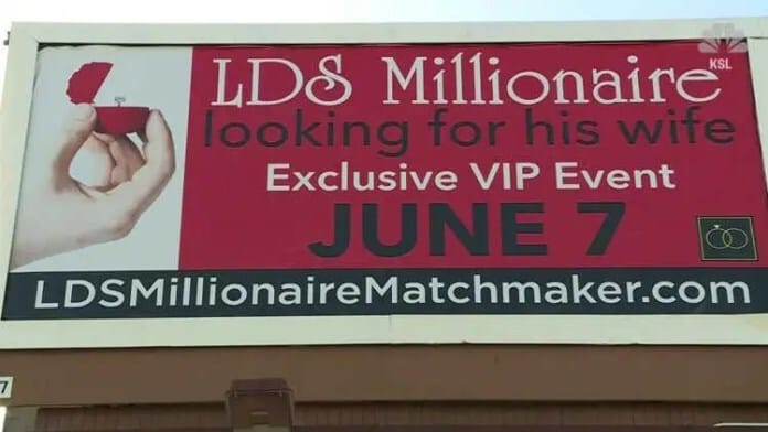 Si pasaron por Salt Lake City durante el último mes, probablemente hayan visto varios carteles publicitarios en las calles anunciando una cita con un misterioso miembro de la Iglesia de Jesucristo de los Santos de los Últimos Días (Church of Jesus Christ of Latter-Day Saints, de allí sus siglas LDS). El anuncio reza «Millonario LDS busca esposa» e invita a posibles candidatas a inscribirse en un «evento VIP exclusivo», a través de un sitio web. Los anuncios son bastante básicos, y estarían excusados si pensaran que eran una broma, pero según la autoproclamada «casamentera LDS» Erin Schurtz, son legítimos.