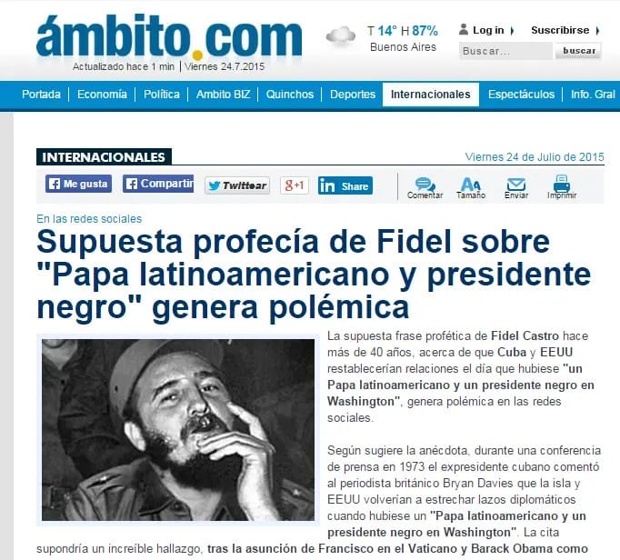 The post La noticia falsa del día: La «profecía» de Fidel Castro appeared first on Periodismo . com.