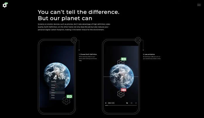 Earthday.Org también insta a los grandes actores de la transmisión a realizar un pequeño cambio en el diseño de sus reproductores de video que podría marcar una gran diferencia, simplemente agregando un ED verde junto a la configuración de 480p, que y la reproducción automática de videos en dispositivos móviles sea Earth Definición.