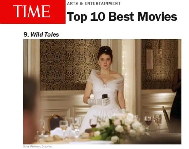 La obra de Szifron llega a Time, luego de recaudar con la taquilla 24 millones de dólares. Además, fue vista por 4,5 millones de personas, si se consideran la cantidad de espectadores que tuvo fuera del país.