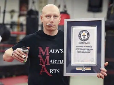 Un canadiense rompió un récord mundial Guinness al utilizar sus mandíbulas para abrir 24 latas de bebidas llenas en 1 minuto.