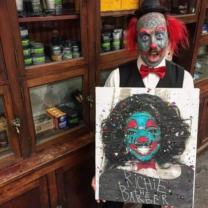 Richie “El Barbero” ha querido ser payaso desde que tiene memoria, pero en lugar de simplemente maquillarse de vez en cuando, decidió tatuarse la cara, cortarse el pelo y hacerse implantes de silicona para convertirse en un payaso permanente.