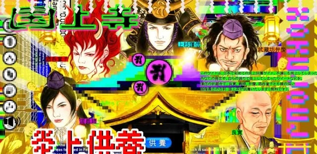 La página web reproduce un audio de un sacerdote que recita el Maka Hannya Haramita Shingyo (El Gran Sutra de la Sabiduría Profundamente Esencial y Más Allá), junto con imágenes de figuras de la historia budista japonesa, incluido el ermitaño monje Soto Zen Ryokan Taigu, el señor feudal budista Uesugi Kenshin, el comandante samurái Minamoto no Yoshitsune, y el monje guerrero Saito Musashibō Benkei.