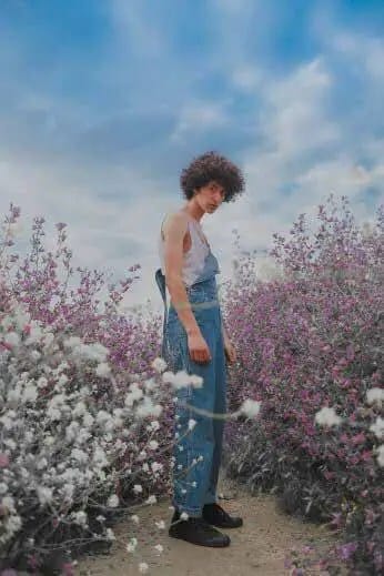 En ese momento, vi un campo de flores con colores muy vivos: violetas, amarillos y los verdes de los tallos. Al final, las elegí como decorado porque es un elemento atemporal. Por ejemplo, un edificio, un teléfono móvil o un coche puede delatar en qué época nos encontramos.