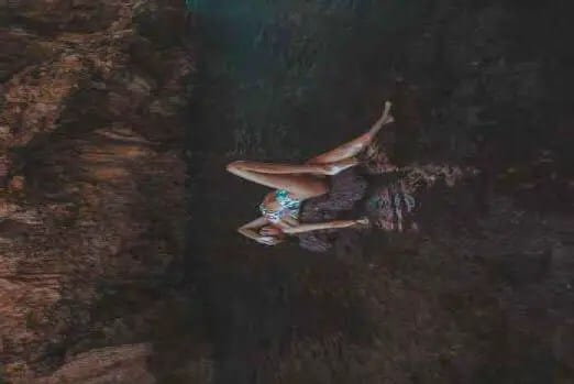 Esta vez me dejé llevar por la inspiración que me llegaba de esta cueva acuática. La luz me recordaba a la pintura barroca: una cortina de luz cenital, que en este caso iluminaba a la modelo. Siempre me ha gustado la iluminación que usaban Caravaggio y Rembrandt en sus obras. Un dato curioso es que hoy en día usamos el nombre de Rembrandt para referirnos a este tipo de luz.