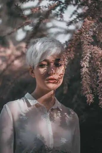 Aparte de la sombra de la cara, lo que hace especial este retrato es la profundidad que se crea al situar los elementos a distintas distancias: la planta ocupa el primer plano de forma enfocada, después se encuentra la modelo y detrás, de nuevo, la planta, pero esta vez desenfocada.