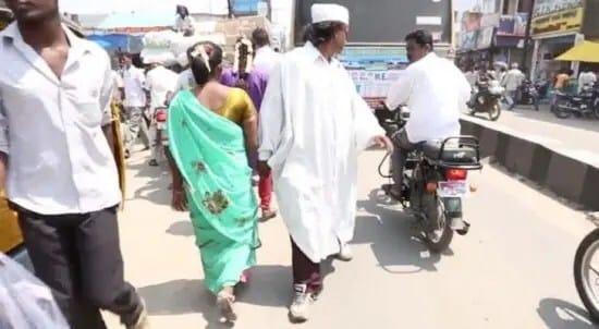 Este hombre vende teléfonos móviles para ganarse la vida en la aldea de Agraharam, estado de Tamil Nadu. El primero de sus actos «heroicos» por la paz fue caminar hacia atrás 300 millas, desnudo, desde su aldea hasta la ciudad de Chennai. Quizás se trate de un pervertido que solo quería exhibir sus partes íntimas…