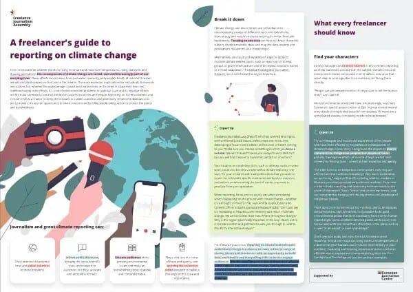 Con el objetivo de contribuir a generar información de calidad, el European Journalism Centre elaboró una completa guía dirigida a periodista independientes, con recomendaciones para informar sobre el cambio climático.