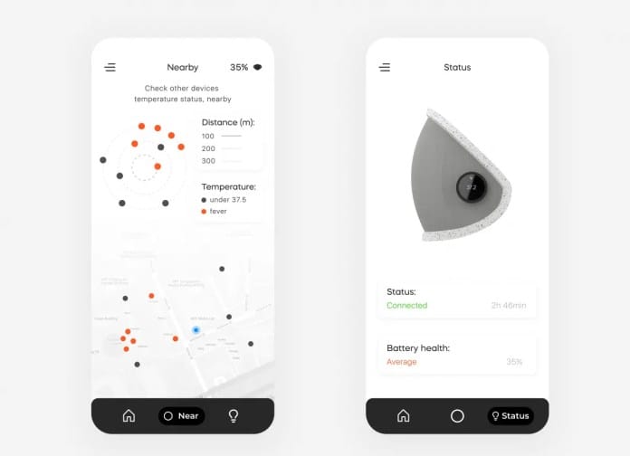 Muy adecuado a su diseño transparente, Ciprian se centra en la transparencia de los datos, con un sensor de temperatura integrado en el lateral del marco. Esto mostrará la temperatura del usuario y permitirá que quienes lo rodean sepan si está sano o si tiene fiebre. Además, la aplicación crea un mapa de los lugares en los que ha estado el usuario, y calcula el riesgo de infección por COVID-19.