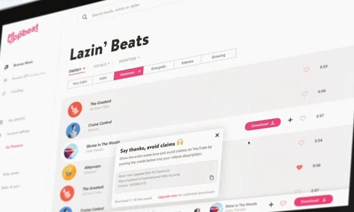 Uppbeat es una plataforma de música libre de derechos de autor que facilita a los usuarios de YouTube y otros creadores de contenido encontrar música gratis y usarla en sus videos.