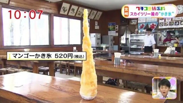 Con un precio de tan solo 590 yenes (USD 5,30), que según SoraNews24 es «un precio razonablemente normal para el hielo raspado en un restaurante», el postre mediano de hielo raspado es en realidad una monstruosidad comestible de más de 2 pies de altura. El primer pensamiento es que parece una torre en miniatura, y resulta que en realidad fue inspirado por el Tokyo Skytree. El edificio real mide 634 metros, por lo que Hyakusho Udon pensó que sería una buena idea hacer una versión de hielo raspado de 634 mm de alto.